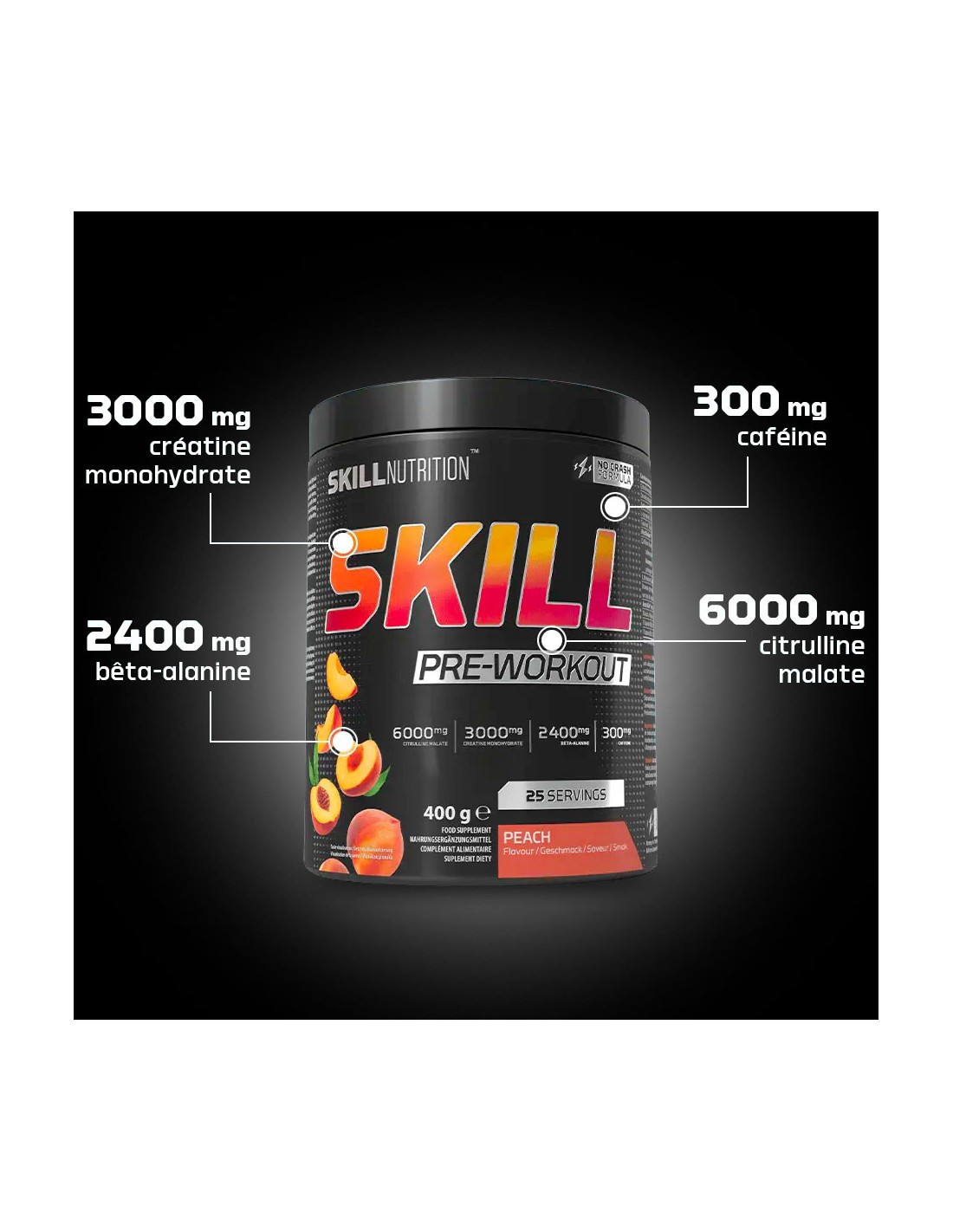 Améliorez votre programme d'entraînement avec le pré-entraînement Skill au goût sucré et rafraîchissant.