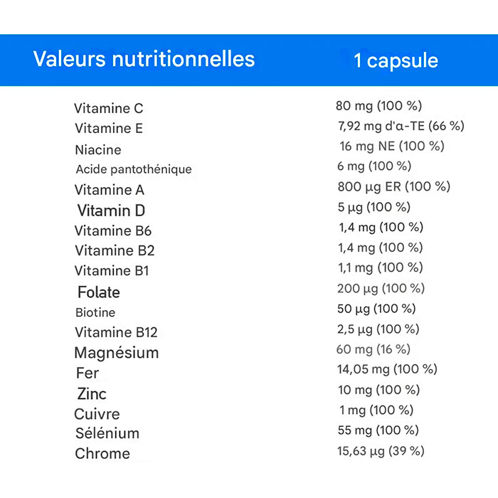 Nous vous conseillons de ne pas prendre de multivitamines le ventre vide.