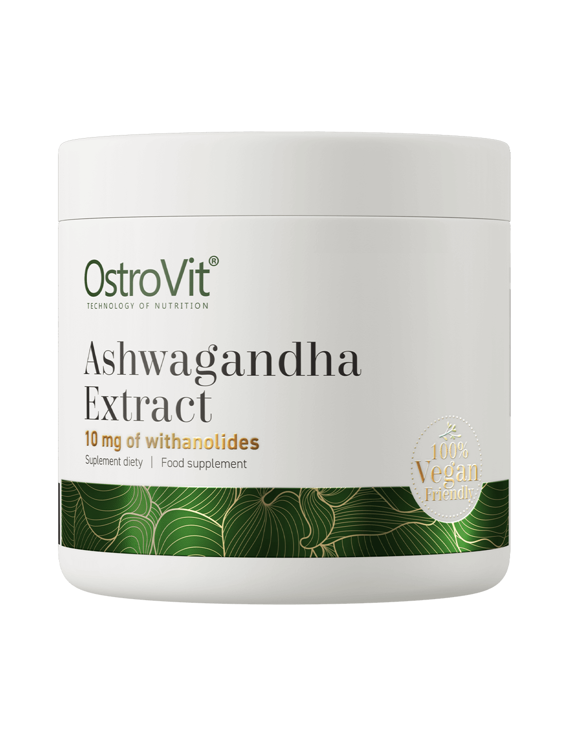 OstroVit Ashwagandha Extract est un complément alimentaire de haute qualité qui contient un extrait de racine d'ashwagandha standardisé pour contenir 7,2 % de withanolides, 1 % d'alcaloïdes et 0,25 % de vitaférine A. Il s'agit d'une préparation végétalienne, disponible sous forme de poudre pratique. Il s'agit d'un produit créé pour les personnes qui souhaitent compléter leur alimentation quotidienne avec des ingrédients précieux.